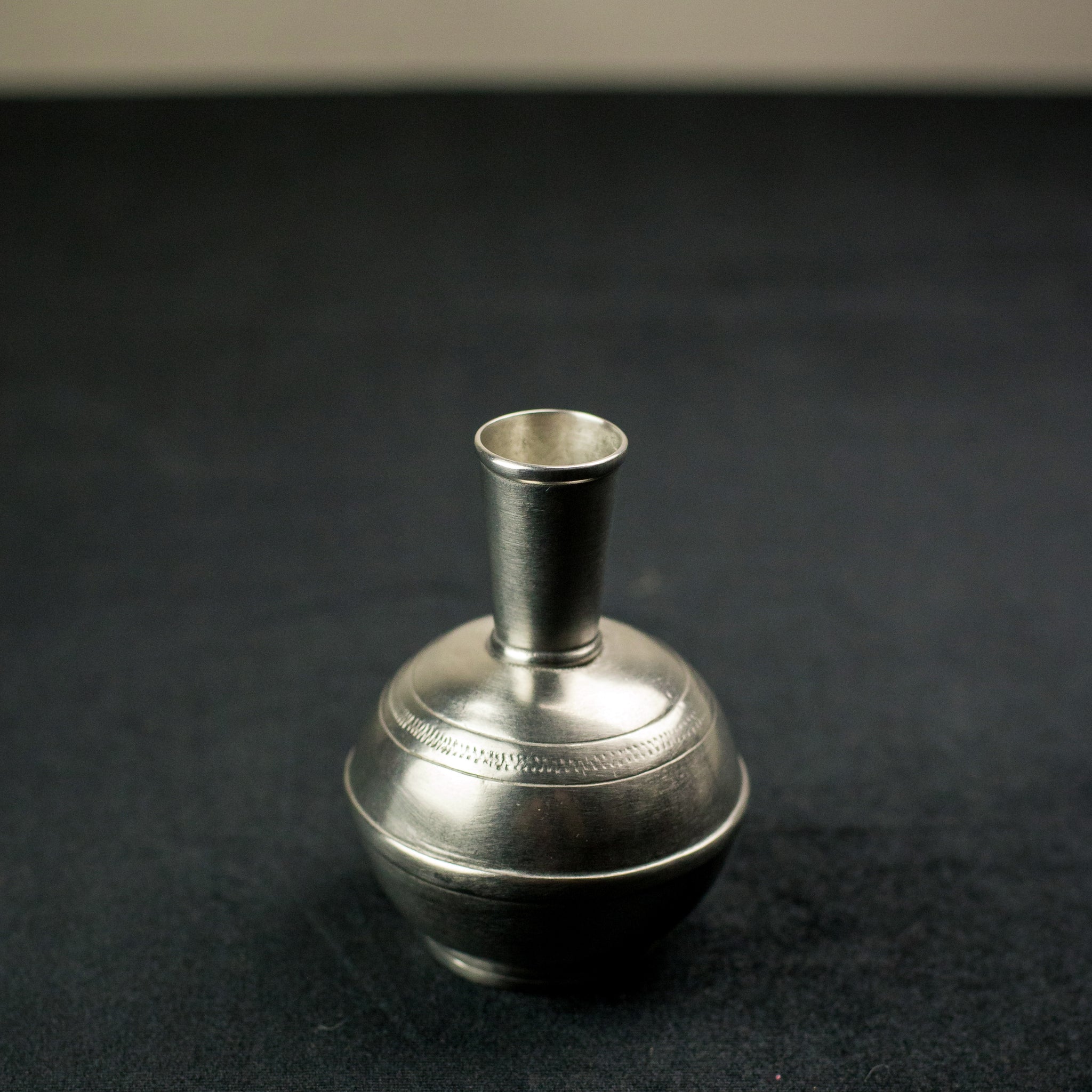 A petite pewter vessel ideal for displaying a single stem or small arrangement. This handcrafted Italian bud vase measures 4.4" tall and holds 9 oz, making it perfect for desks, nightstands, or bathroom counters. Pewter develops character slowly over time and requires minimal upkeep—occasional polishing with standard metal polish keeps it looking pristine. Lead-free and food-safe, it's easily maintained with warm soapy water and thorough drying. Not suitable for microwave or oven use.