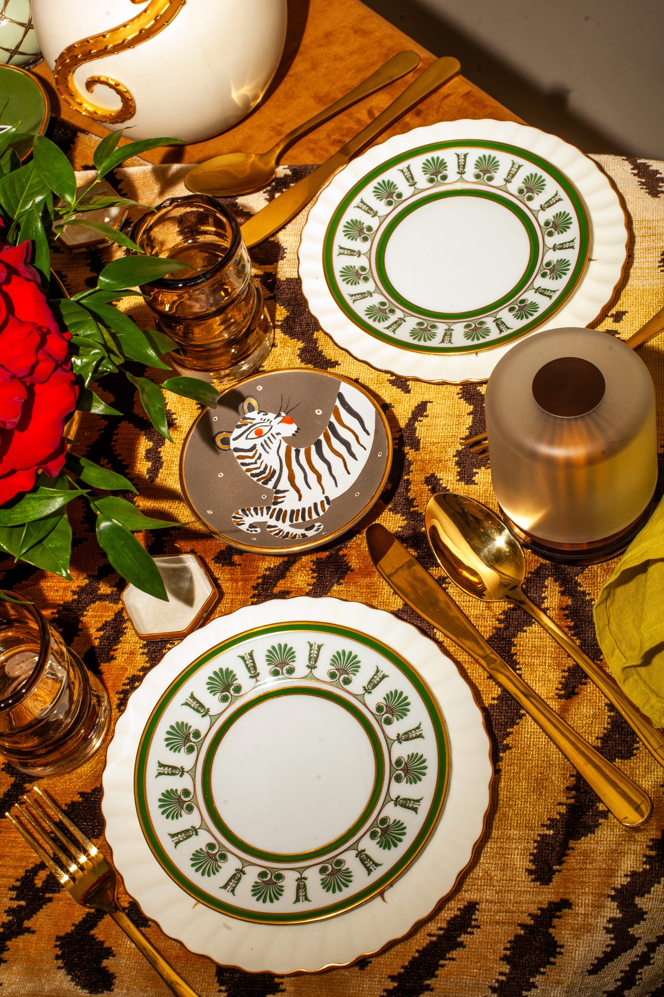 Waylande Gregory handcrafted ceramic bowl with ultra matte glaze and 22k gold details. Measures 4.5" diameter x 1.5" tall. Hand wash only with mild soap; avoid abrasive cleaners. Not dishwasher or food safe. Made in Peru.