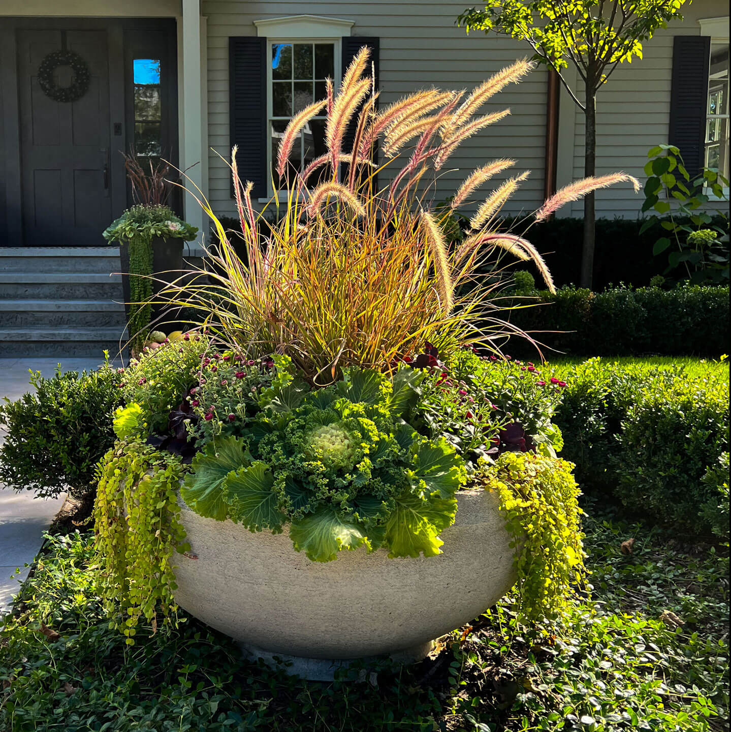 Seasonal. Beautiful. Special. Our experienced team designs lush seasonal container and festive outdoor décor using elements such as texture, color, contrast, and unique plant choices to create sumptuous designs for your home or office. Additionally, by joining our annual container program you receive the following benefits: a ten percent reduction in planting fees, four consecutive seasonal containers and a jump to the front of the line during seasonal changes.
